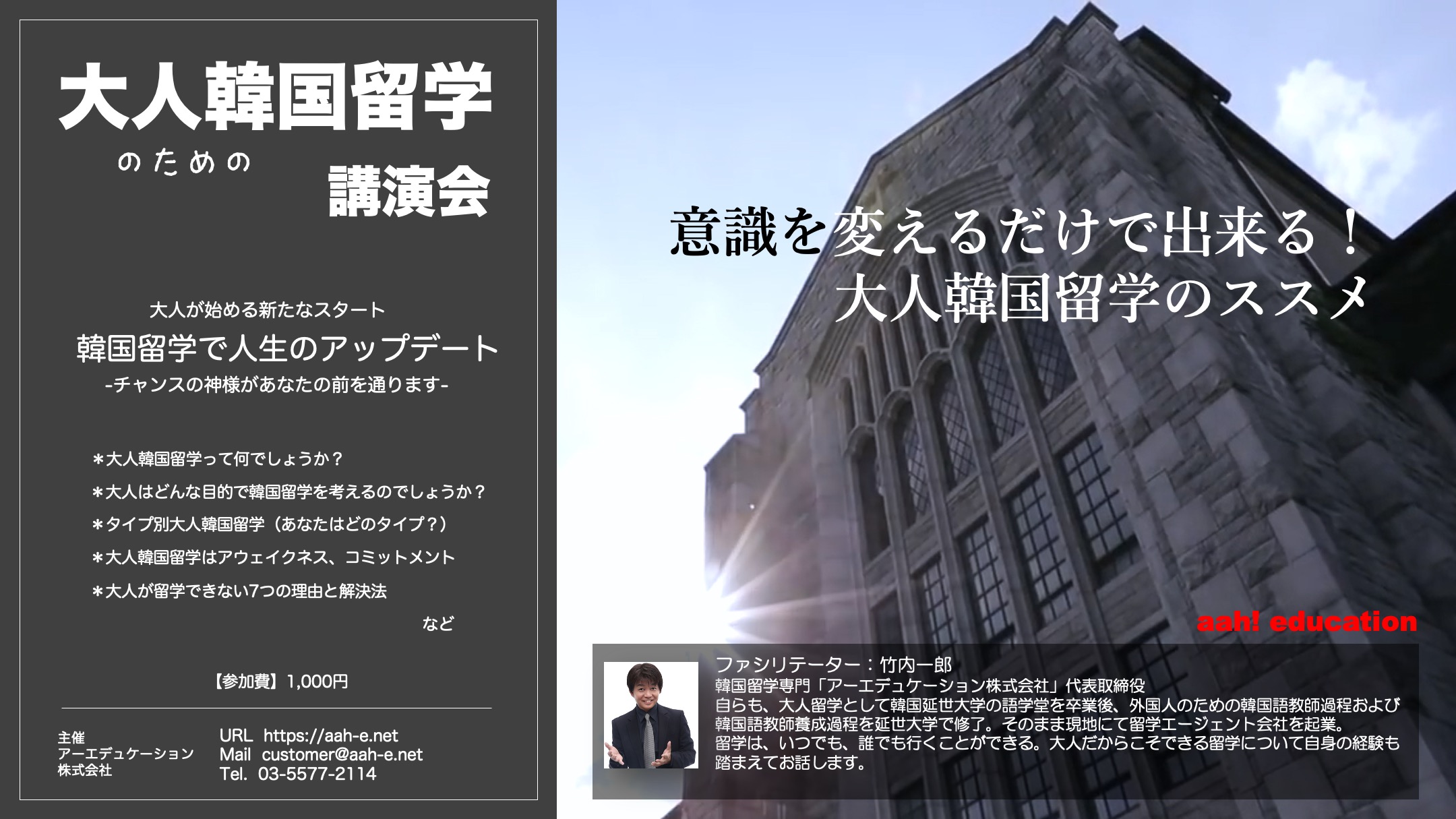 2024年10月開催のaah! education・主催「大人韓国留学講演会」のご案内