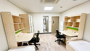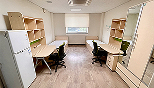 | 学校準備ワンルーム | 2学期以上申請の場合、学校が準備するワンルーム(アパートタイプ)の準備が可能。 設備品: ベッド、机、椅子、TV、洗濯機、冷蔵庫、電子レンジ、電熱コンロ、クローゼット、キッキン、Wi-Fi、エアコン、床暖房など |